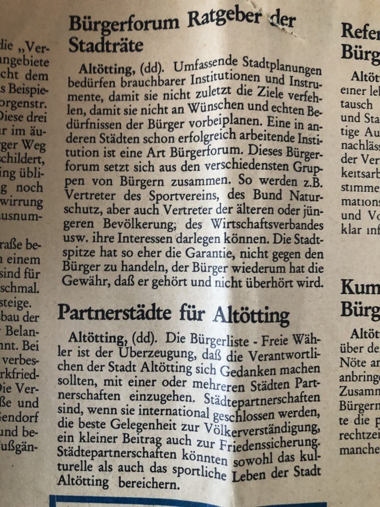 Der Landkreis sowie viele Städte und Gemeinden hielten es früher ähnlich wie die Stadt Altötting heute noch. Inzwischen liest man im Landkreis Altötting schon nach der FrSprSi des Kreistags erste Weichenstellungen in der Zeitung, die Sitzungen zum Haushalt sind dann sowieso ab der 1. Beratung in den Gremien öffentlich. Und – wie gesagt – der Artikel 52 GO ist vollkommen klar: „Die Sitzungen sind öffentlich, soweit nicht Rücksichten auf das Wohl der Allgemeinheit oder auf berechtigte Ansprüche einzelner entgegenstehen.“